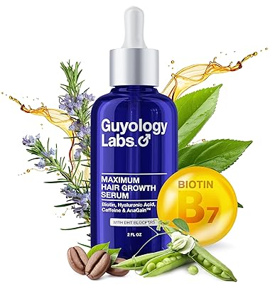 Guyology Labs Hair Growth Serum for Men & Women with 4% AnaGain™, Extra Strength Formula with Biotin & Hyaluronic Acid, Supports Thicker Hair and Scalp Care, Dermatologist Recommended, Made in USA