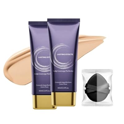 Body Makeup, Body Coverage Perfector & Complexion Perfector with Powder puff, Sweat-Resistant Transfer-Resistant Leg & Body Foundation, Tattoo Cover Up, Natural Radiant Finish,60ml-2pcs